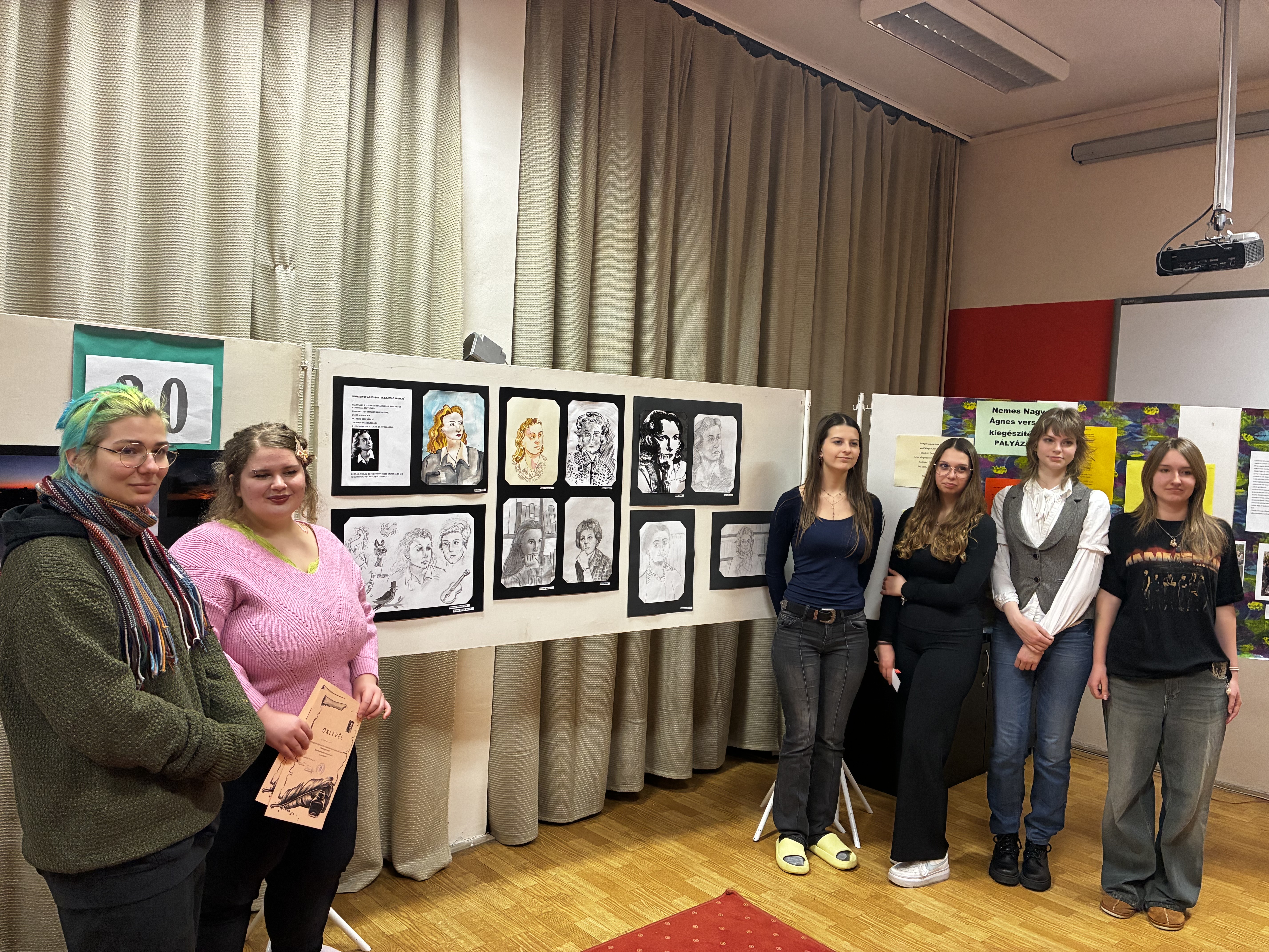 Nemes Nagy Ágnes portrérajzoló versenyt rendeztünk kollégistáink körében. Sári Etelka tanárnő, képzőművész értékelte a beérkezett pályaműveket.