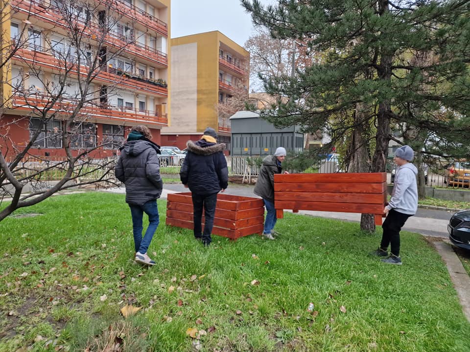 Az Öko szakkör tagjai Horváth Zétény és Papp Ferdinánd lelkesen kezdtek bele a munkálatokba Horváth Lénárd tanár úr és Nyikus Norbert tanár úr vezetésével.