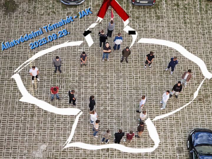 Az Állatvédelmi Témahét keretein belül a JAK az idén is csatlakozott az állatok világnapja alkalmából szervezett Állatvédelmi Titkos Projekt Kihíváshoz. Célja, hogy az Állatvédelmi Témahétnek köszönhetően, pedagógusok és gyermekek összefogásával egy országos közösségi média kampány valósuljon meg október 4-én. Kollégiumunk a facebook-os és instagramos kihíváshoz csatlakozott. A projekt résztvevői rövid ötletelést követően úgy határoztak, hogy az idén egy gólya alakzatot formálnak meg az intézmény hátsó udvarának parkolójában. Abban a szerencsés helyzetben vagyunk, hogy a 9 emeletes épület felső emeleteiről tökéletesen lehet fényképezni, így szuper képeket készítettünk drón használata nélkül is. Vidám és vicces pillanatok közepette hívtuk fel diáktársaink és a világháló népének figyelmét az állatvédelem fontosságára.